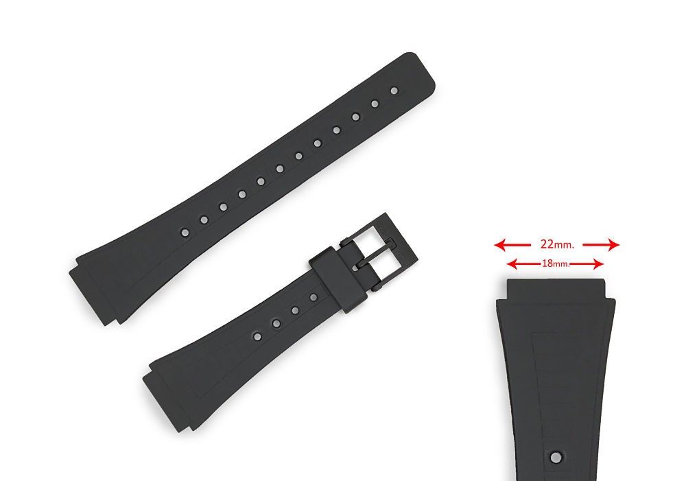 Correa de reloj Diloy modelo 148H1 fabricada en PU, hebilla de plástico. Medida 18mm. Compatible con relojes Casio AQ28W, AQ48, AQ51, F84W, F88W, W48 y otros.