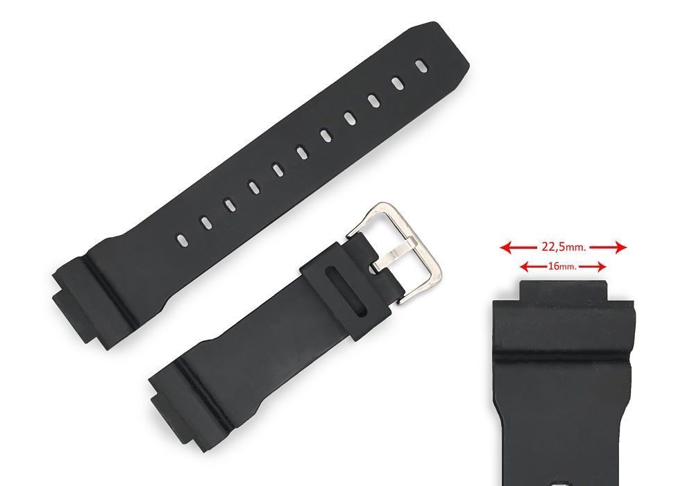 Correa de reloj Diloy modelo 413F3 fabricada en PU, hebilla metálica de acero. Medida 16mm. Compatible con relojes Casio de las series G-5600, GLX-5600, GW-M5600, GLS-5600, GW-5000 y series 6900.