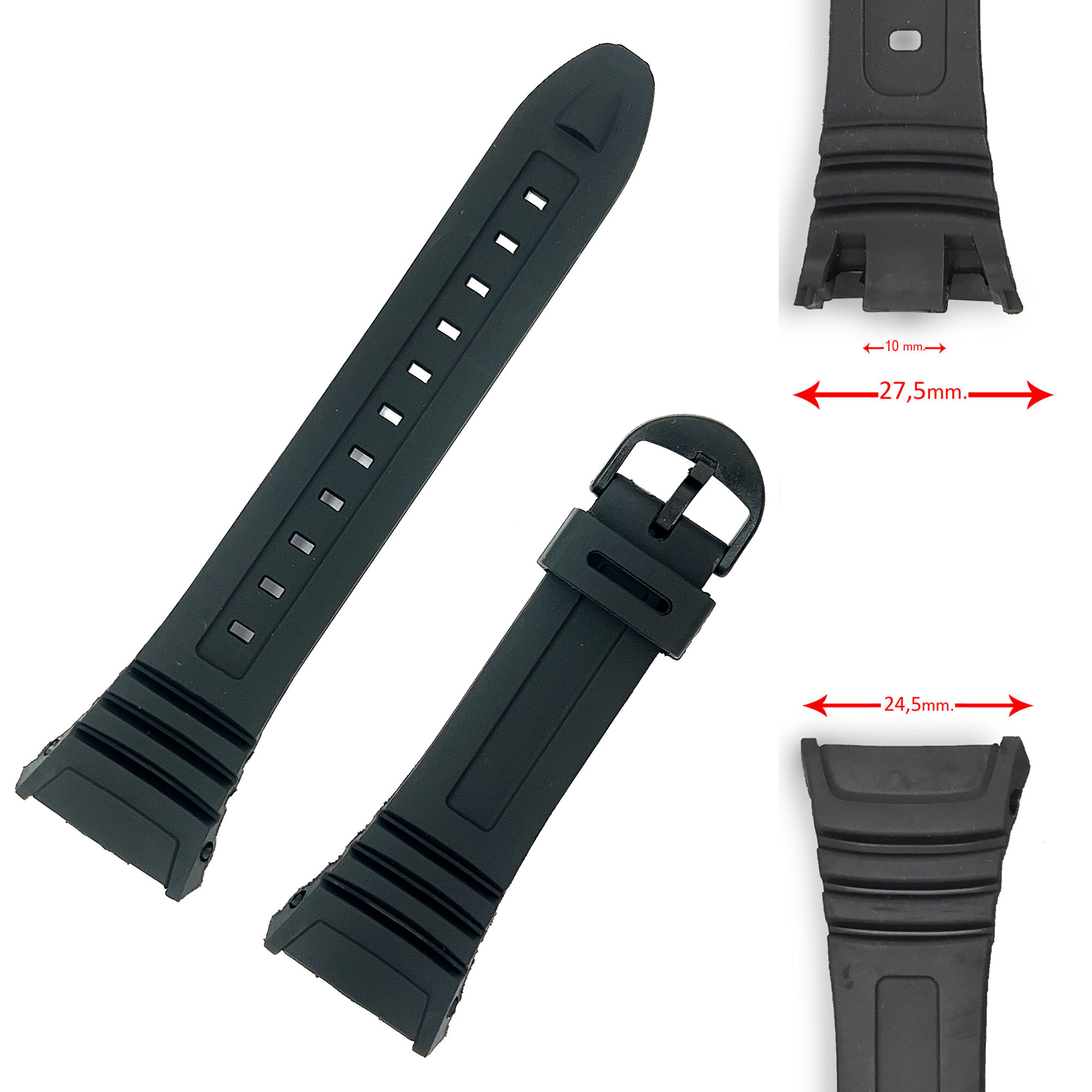 Correa para reloj fabricada en resina de PU, Hebilla Plástica. Compatible con relojes Casio W96H y otros.