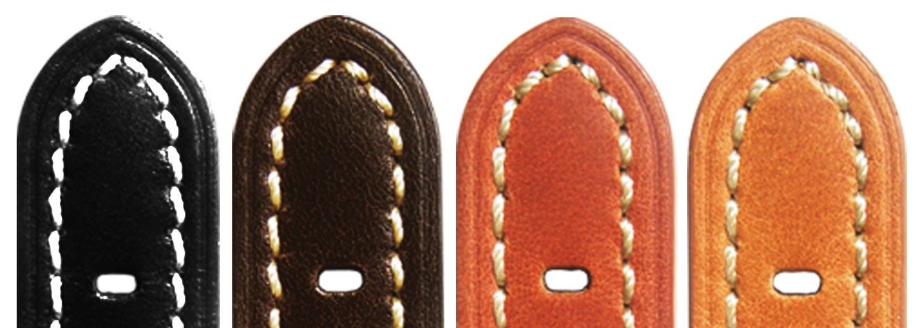 Usamos dos trabillas o pasadores vueltos hechos con el mismo cuero que la superficie de la correa, una fija y otra móvil. La trabilla móvil está reforzada por una costura en su parte posterior. Es común que las trabillas parezcan de diferente color que la correa. Esto es debido al comportamiento del cuero al someterlo a diferentes tensiones. Si dobla la correa verá cómo se aclara y adquiere un tono más similar al de la trabilla. El color de la correa tenderá a oscurecerse a media que vayan transcurriendo los días en su reloj.