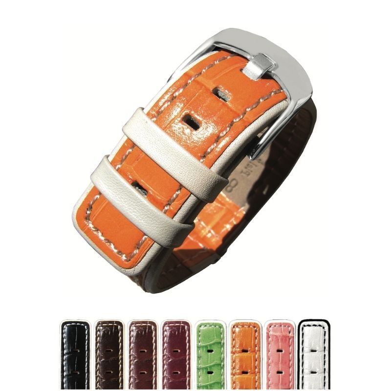 Para la fabricación de este modelo de correa de piel para reloj empleamos piel de ternera curtida en Italia con un grabado de piel de alligator de escama cuadrada y acabado mate. A lo largo de los años, hemos ido probando pieles procedentes de otros lugares. Al final siempre acabamos regresando a Italia porque sólo allí logran dar ese toque de contraste de colores que hace de nuestros modelos de imitación alligator únicos en el mercado.