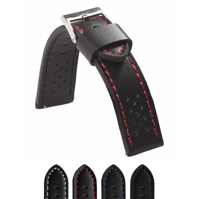 | Titulo_ML_CO | Correa de reloj - Cuero vacuno liso perforado rally racing vintage - Diloy 398 |