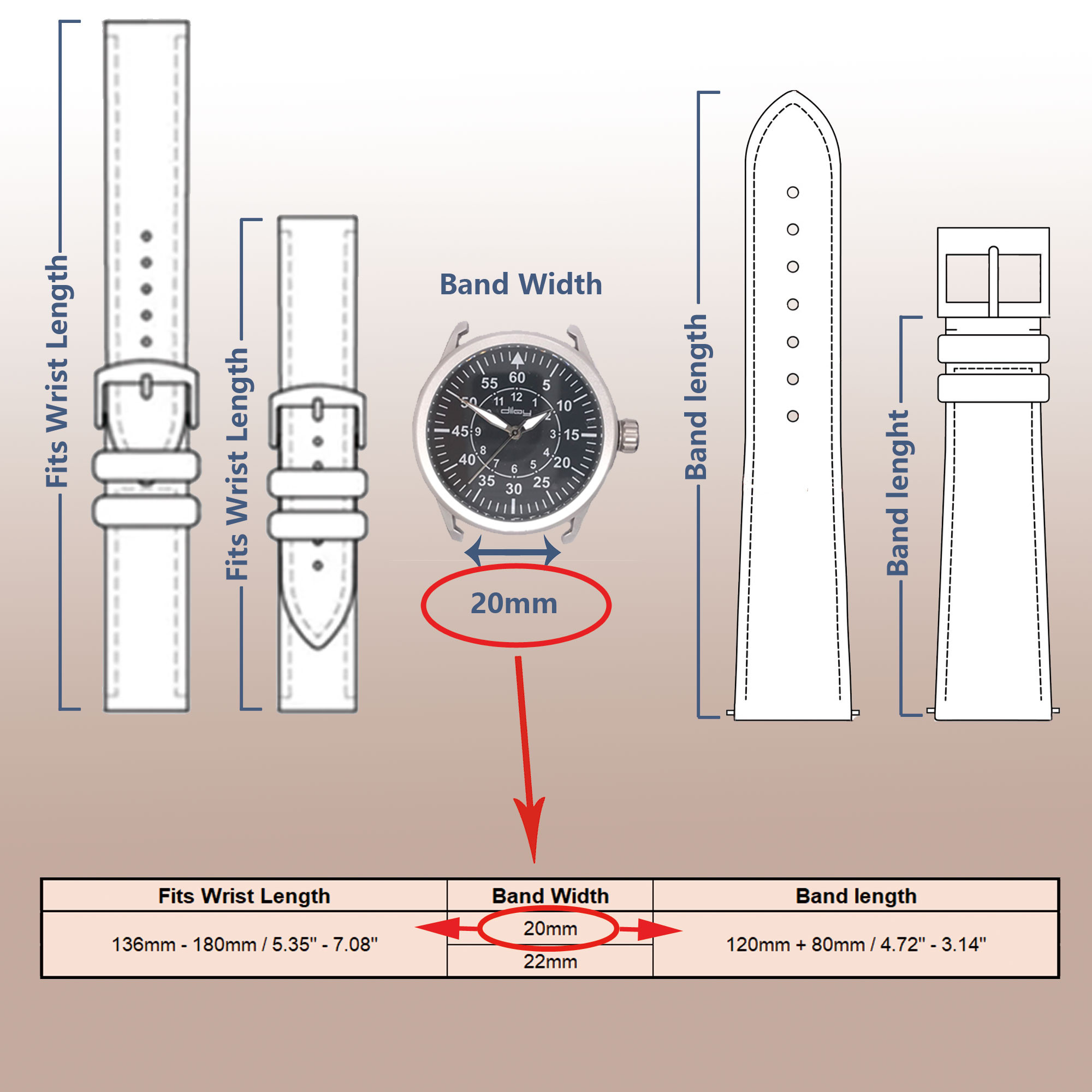 Disponible en anchos de 20mm y 22mm, esta correa se adapta perfectamente a la mayoría de relojes tradicionales con terminal recto, convirtiéndola en un repuesto ideal para renovar tu reloj clásico con estilo y distinción.
