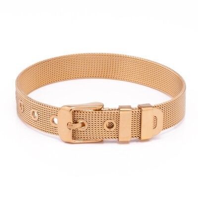 Pulsera mesh de acero marca Diloy. Chapado dorado IPG/PVD. Compatible con la coleccion de charms para mesh Diloy. Incluye dos terminales para segurar que los charms permacen en su lugar