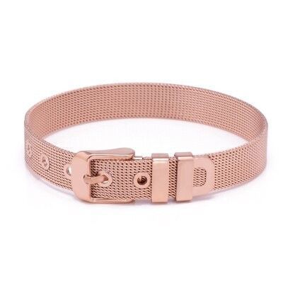 Pulsera mesh de acero marca Diloy. Chapado rosa o cobre IPG/PVD. Compatible con la coleccion de charms para mesh Diloy. Incluye dos terminales para segurar que los charms permacen en su lugar